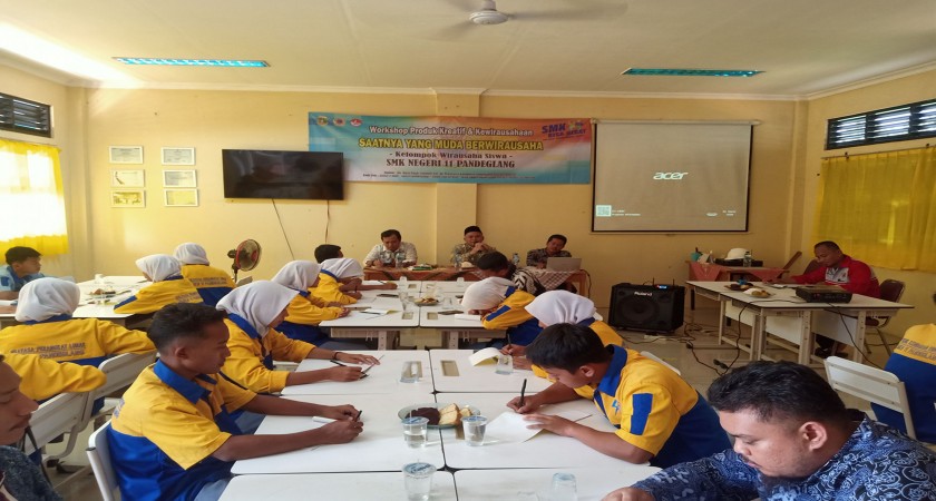 Pandeglang, 15 September 2022, SMK Negeri 11 Pandeglang mengadakan Workshop Produk Kreatif dan Kewirausahaan dengan Tema : Saatnya Yang Muda Berwirausaha dengan Pembicara : Rizal Fauzi, M.Pd. Dengan diadakanya Workshop ini agar menjebatani dan menciptakan wirausaha yang kreatif, inovatif dan mandiri untuk menuju Indonesia Emas.